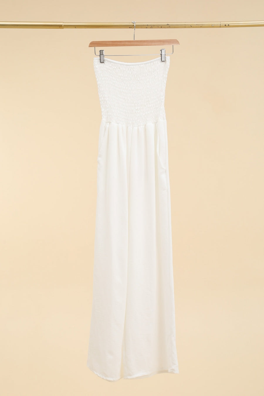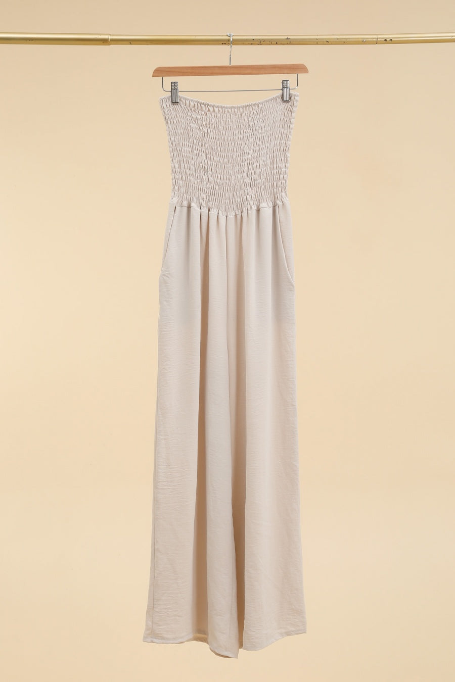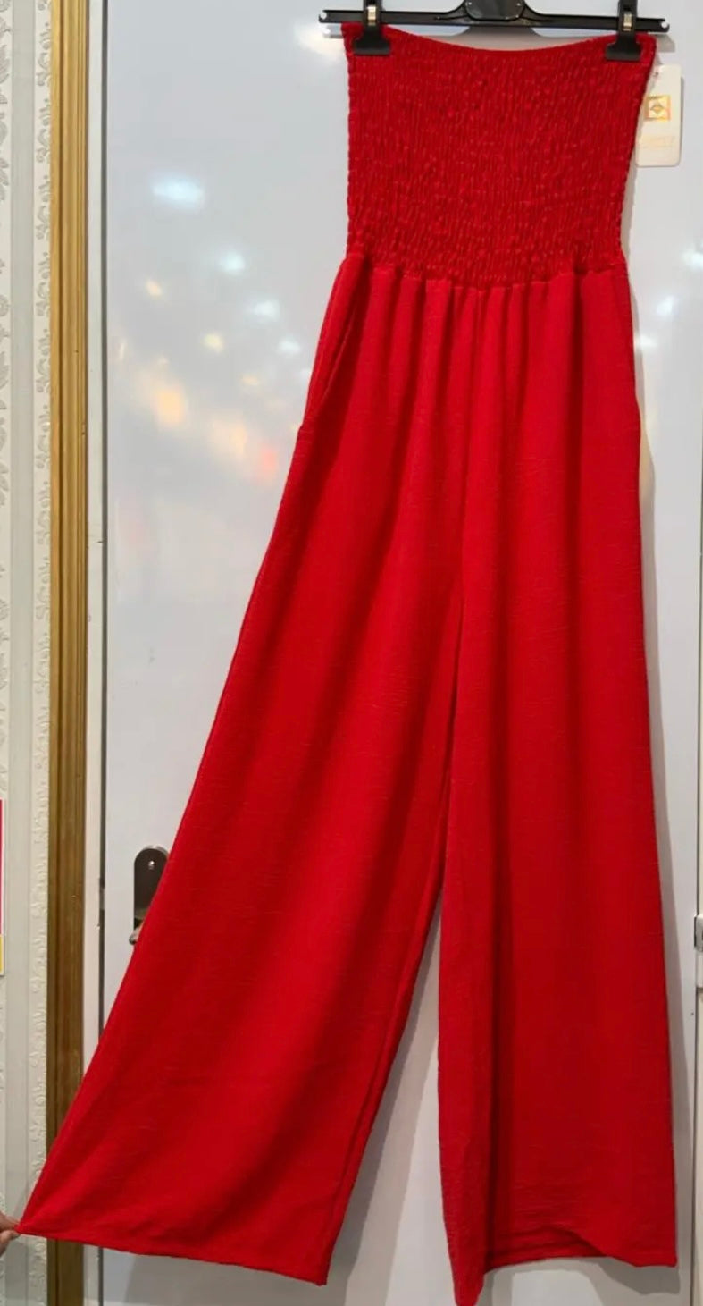 La combinaison Sofia allie confort et élégance. Son haut smocké épouse la silhouette tandis que sa coupe fluide apporte une allure chic et décontractée.